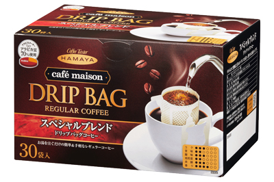 カフェメゾンドリップバッグスペシャルブレンド(30袋入) 軽やかでソフトな口当りの中に芳醇な味わい。ちょっとした贈り物に最適な箱入りです。 容 量8g×30袋本体価格オープン価格仕 様レギュラーコーヒーケース入数12入賞味期限製造日より12ヶ月JANコード4976610024810